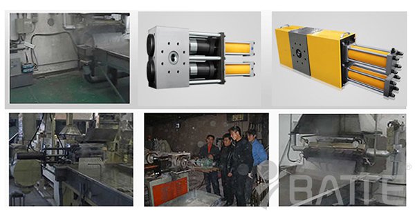 (2)小型的拉條冷切造粒工藝一般都用多網(wǎng)往復(fù)過濾的換網(wǎng)器(如:可采用雙柱四工位液壓換網(wǎng)器、雙柱四工位反沖洗液壓換網(wǎng)器),因?yàn)樗鼛Х€(wěn)壓及自動排氣機(jī)構(gòu),換網(wǎng)時不停機(jī)、不斷條、不影響正常生產(chǎn),粒子光滑無氣泡??谀Ec換網(wǎng)器一體化設(shè)計制造,合理、經(jīng)濟(jì)、實(shí)惠!